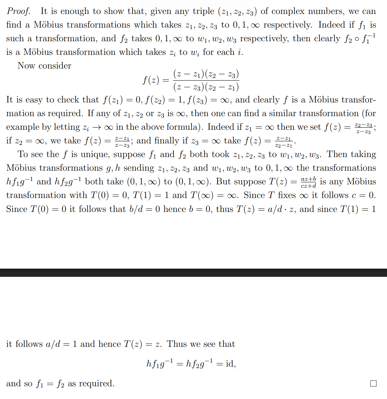 Link to originalUniqueness of Möbius Transformation