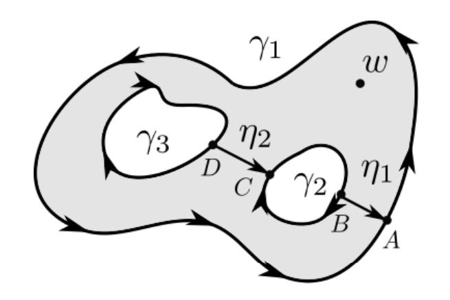 Apply Cauchy’s Integral Formula to soAs curve is made up of boundary components in the right orientation and cuts